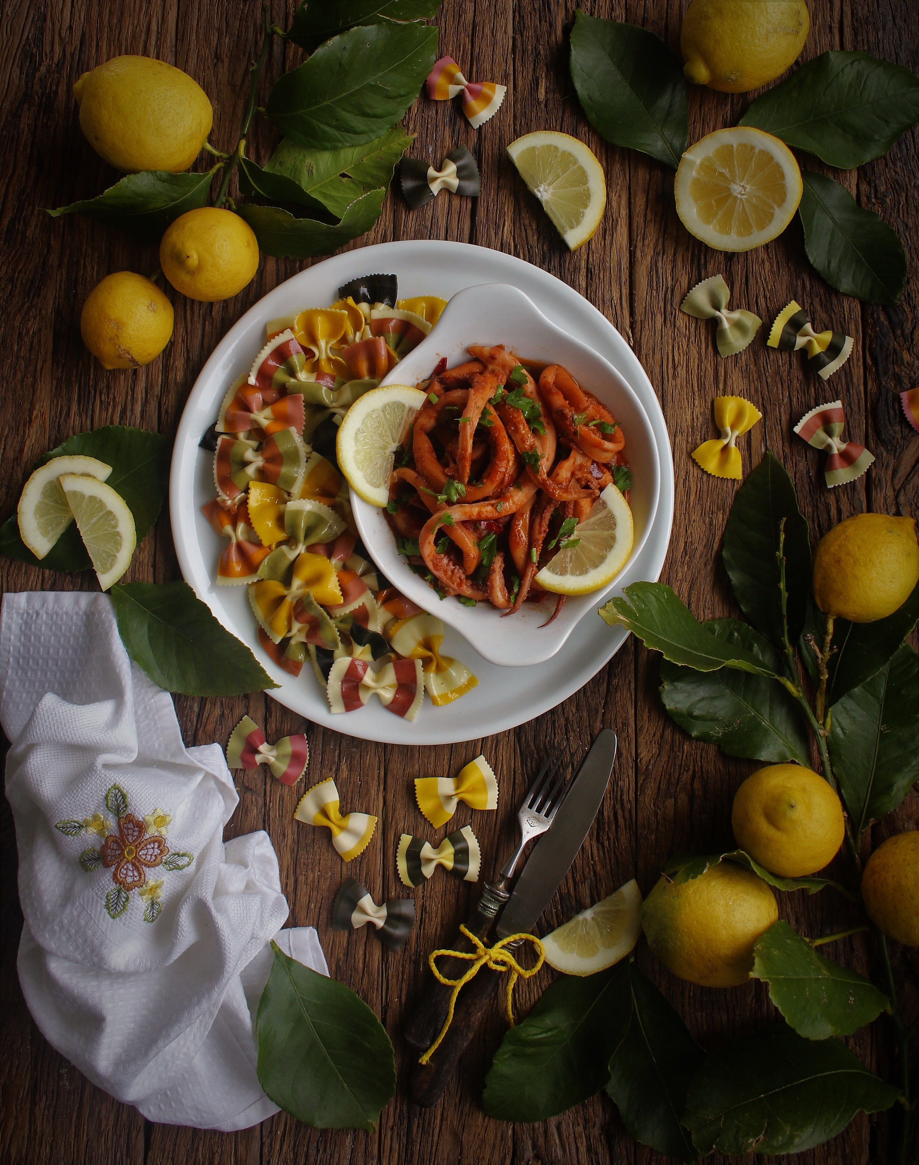 No momento de servir, coloque um pouco de sumo de limão por cima das lulas e da massa.