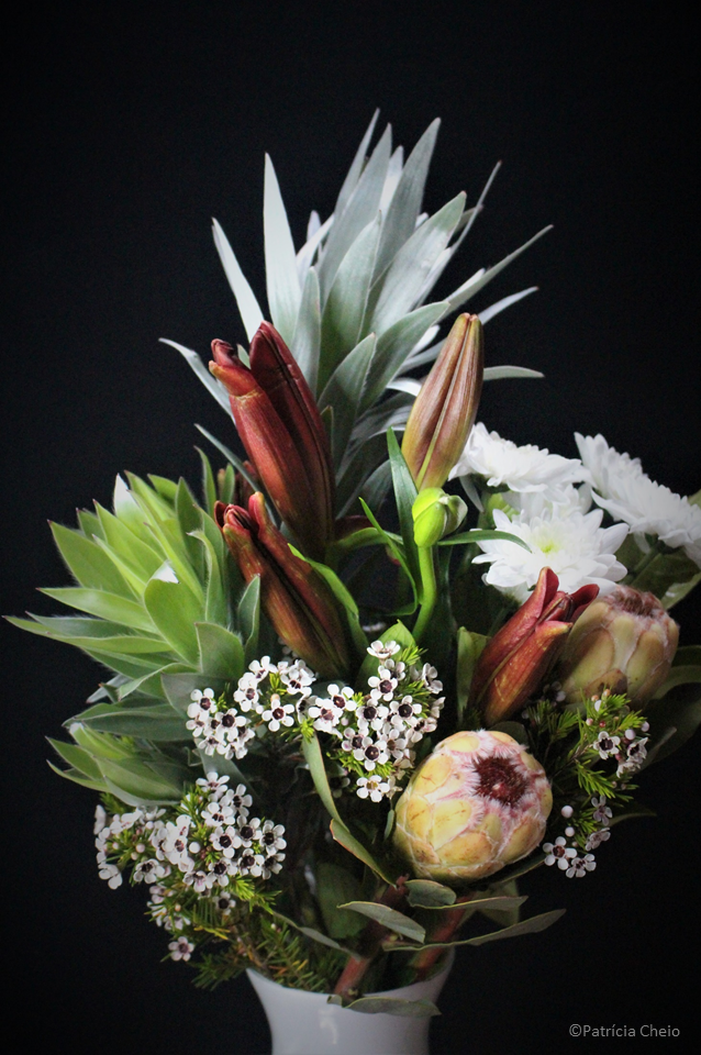 Esta cozinheira teve folga e foi, com outras três mães da família, almoçar ao restaurante. Foi um almoço descontraído com três gerações. Contudo, o meu lado de pasteleira falou mais alto e, na véspera, não resisti a confecionar um bolo para comemorar este dia. Uma exótica prótea da Floriazoris ornamentou o bolo e a composição fotográfica. Dias especiais merecem ficar registados em pixels, não acham?
