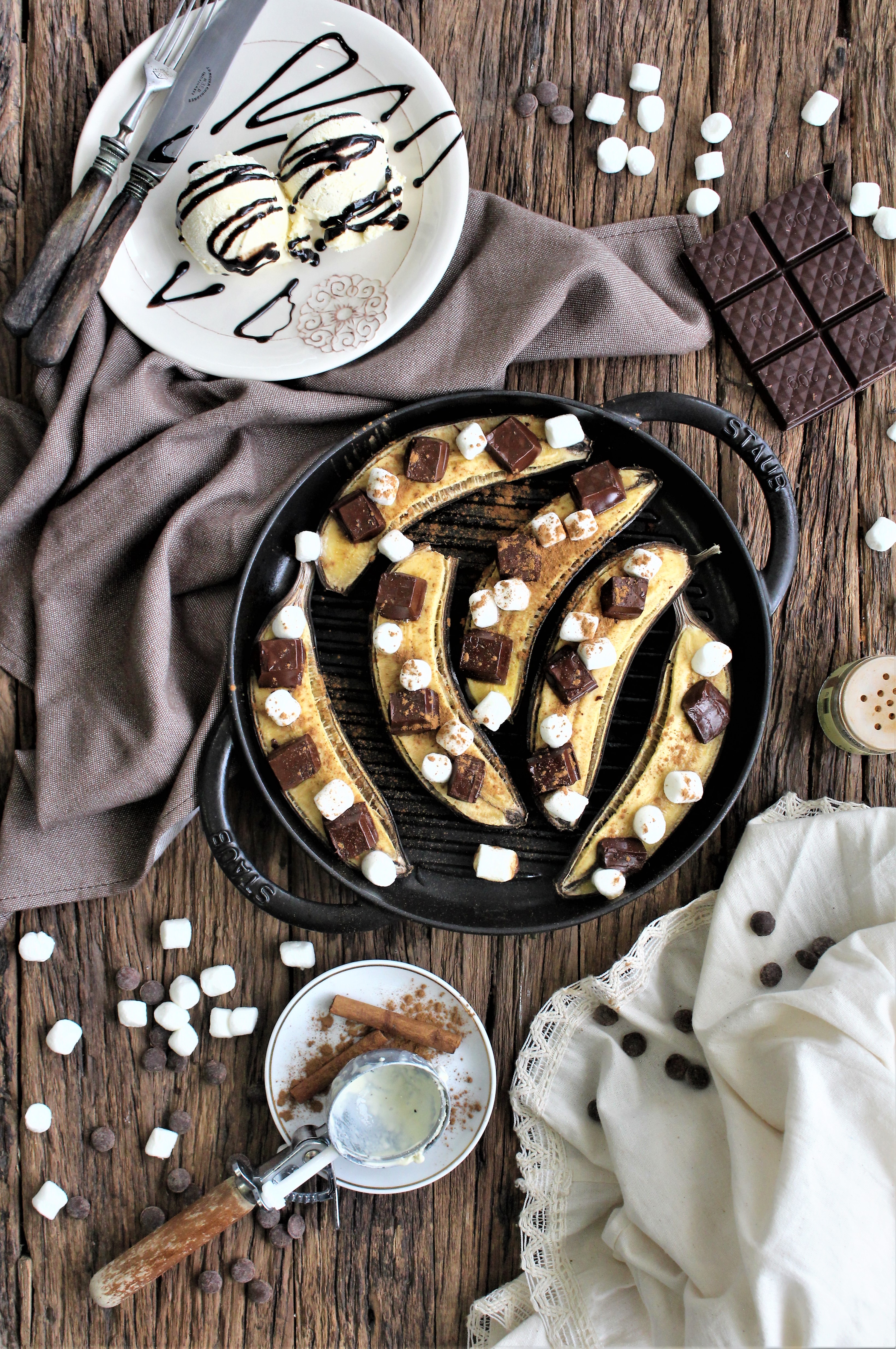 Banana Grelhada com Chocolate Negro, Marshmallows e Canela