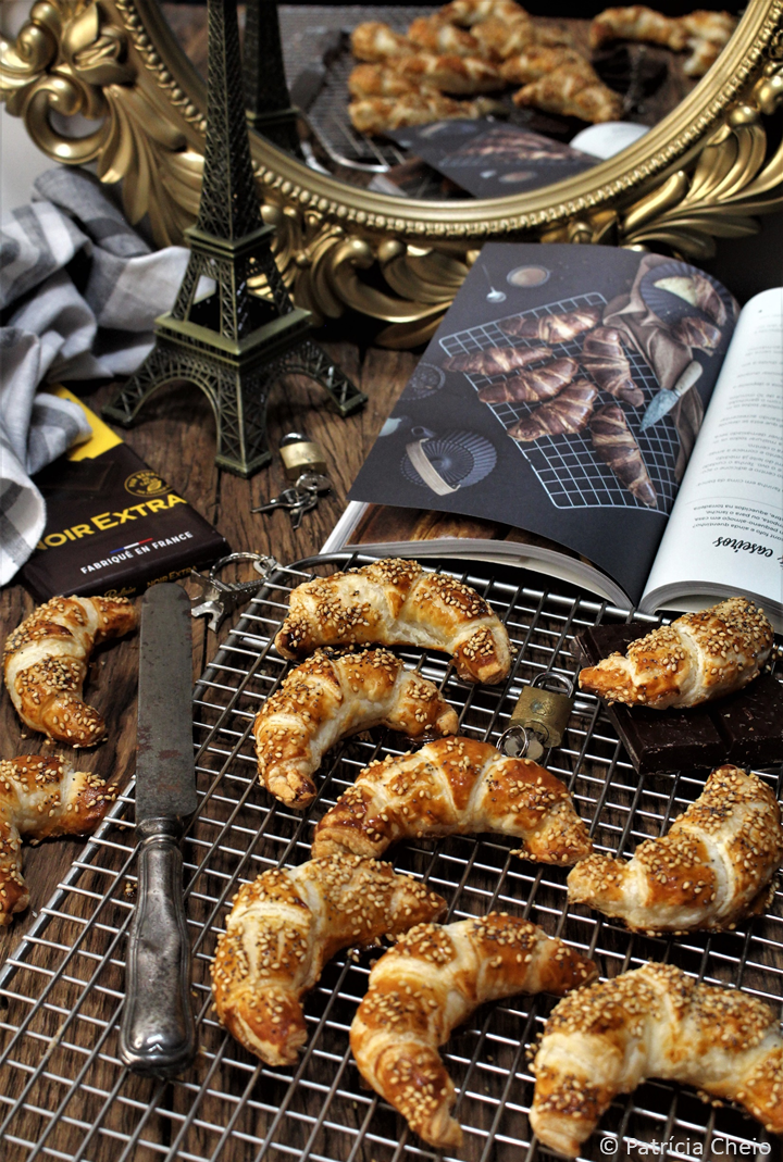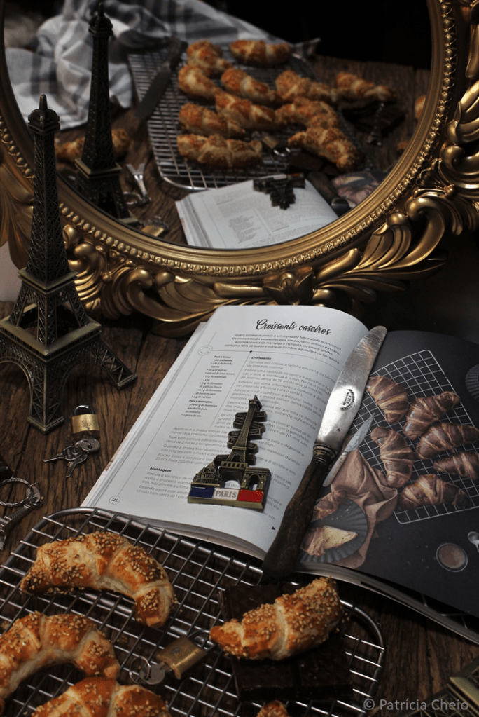 - Distribua os croissants por dois tabuleiros forrados com papel vegetal para que estes fiquem bem espaçados.