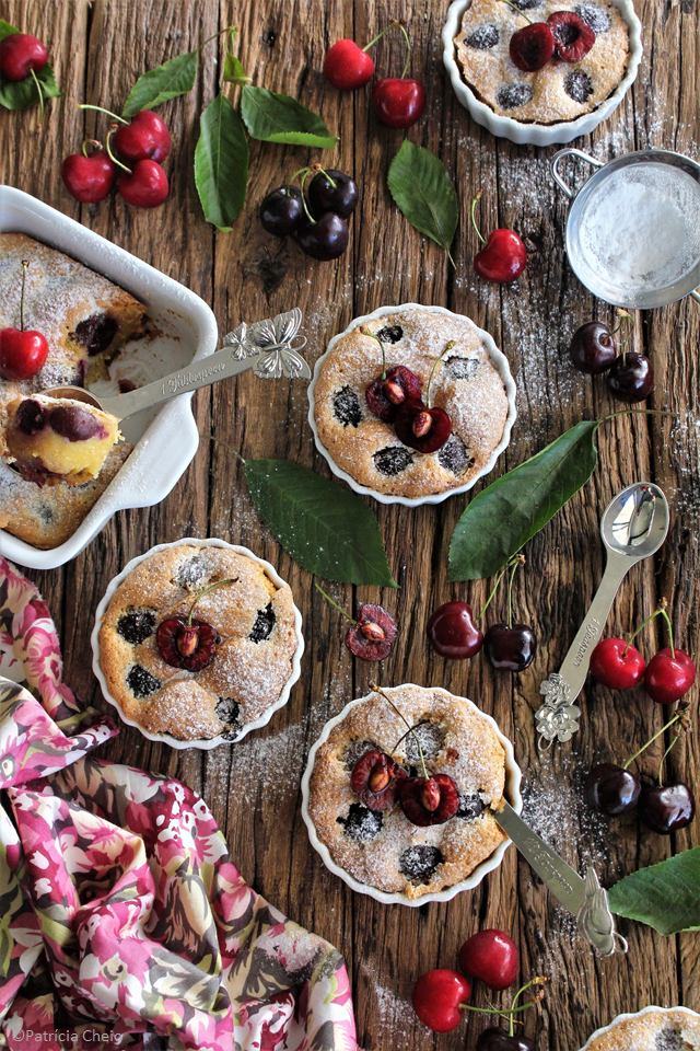 Resolvi fazer um clássico francês. O tradicional Clafoutis de Cerejas. Para tal, reproduzi esta receita da autoria de Christophe Felder, do blog Cakes in the City, que se encontra no blogue da minha amiga e saudosa Elvira, uma das primeiras bloguers de culinária portuguesas e que para mim será sempre uma referência.