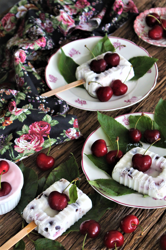 - cerejas a gosto (1 metade de cereja +2 cerejas picadas por picolé)