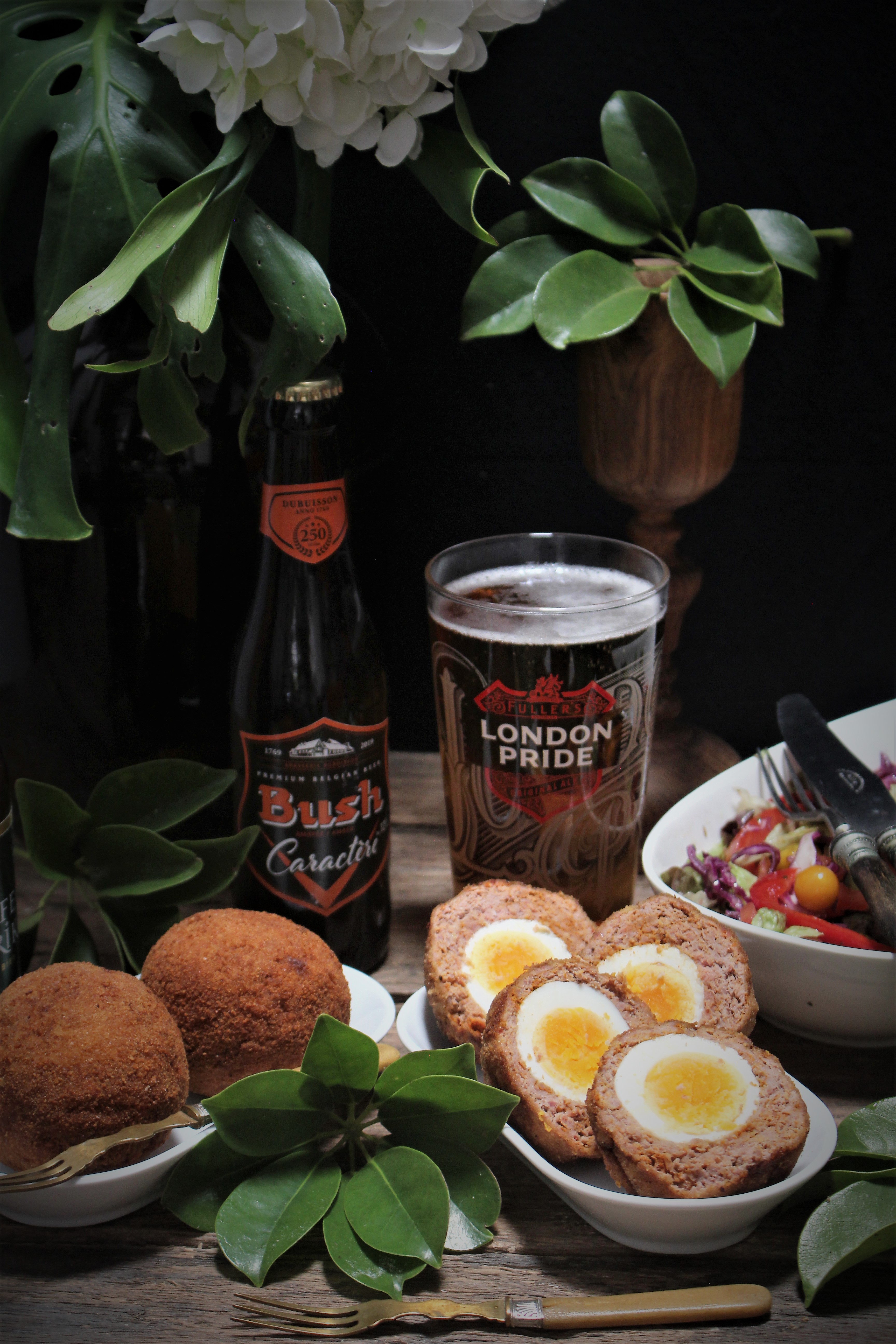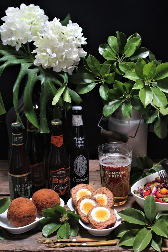 Hoje viajámos até à Escócia para experimentar os Ovos Escoceses. Fizemos um desvio até à Bélgica e trouxemos umas cervejas. Confecionar pratos tradicionais de outros países é também uma forma de apreciarmos diferentes culturas. Infelizmente não chegámos a sair de casa, mas posso dizer-vos que já somos grandes fãs destes ovos escoceses.
