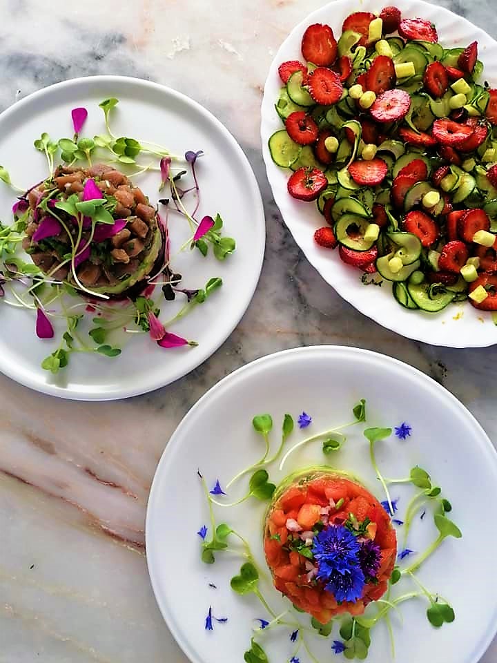 - Lave os pepinos e comece por espiralizá-los, mesmo com a casca, com recurso à lâmina lisa da espiralizadora. Vai obter umas tiras finas e onduladas. Disponha-as numa saladeira. Se preferir, com a tesoura de cozinha, dê uns cortes cá e lá nas longas tiras de pepino.