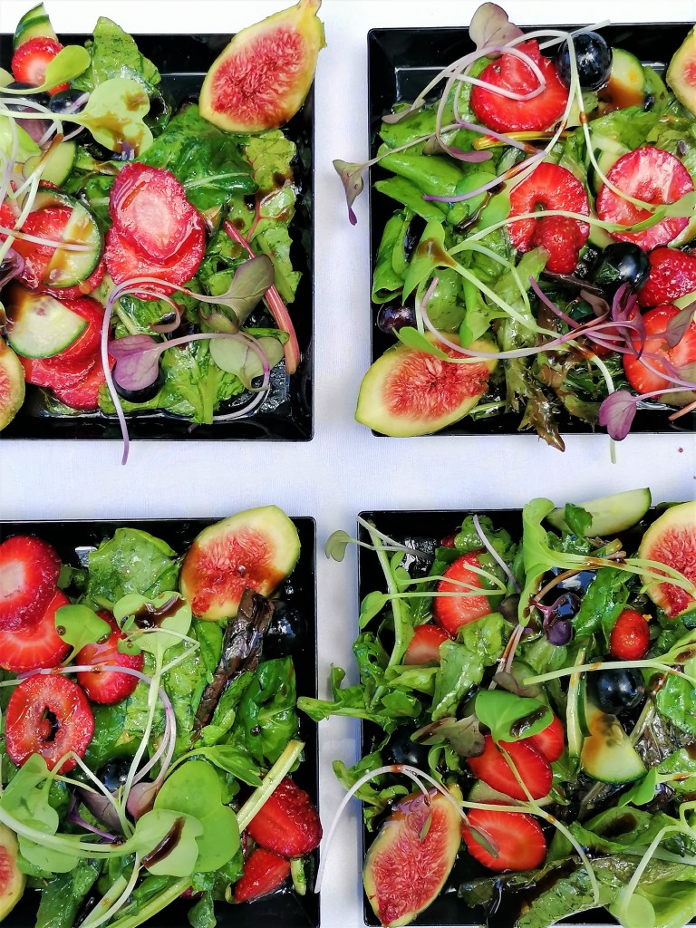 - Junte os morangos e os cubos de queijo fresco. Tempere com sal.