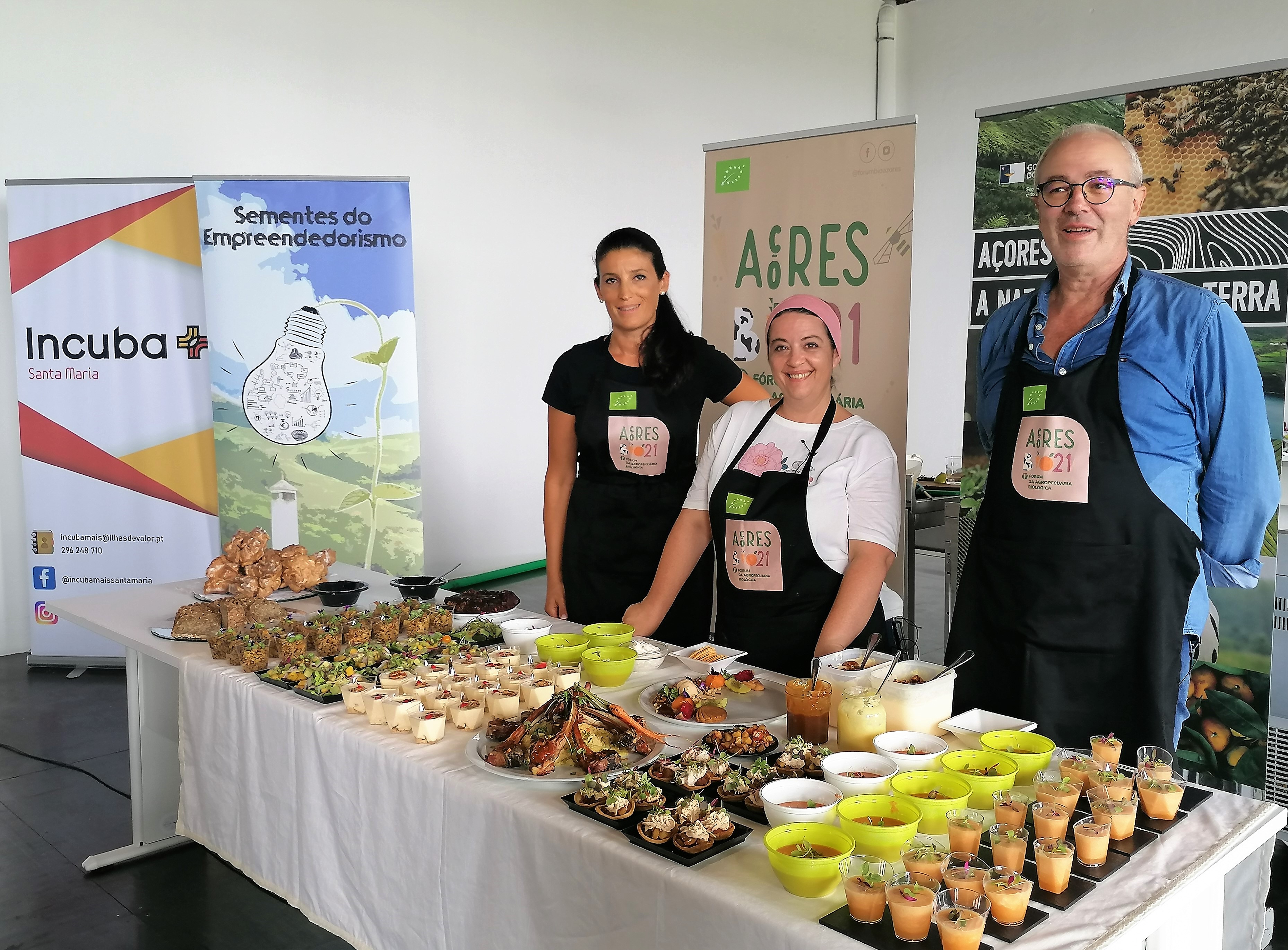 Em meu nome e dos meus colegas de fogão e forno, gostaria de agradecer todo o apoio por parte da organização e dos produtores biológicos nas diferentes ilhas, que nos têm recebido com tanto entusiasmo, bem como à Margarida Pereira pela seleção do espaço Incuba + Santa Maria, local onde se respira empreendedorismo e inovação.