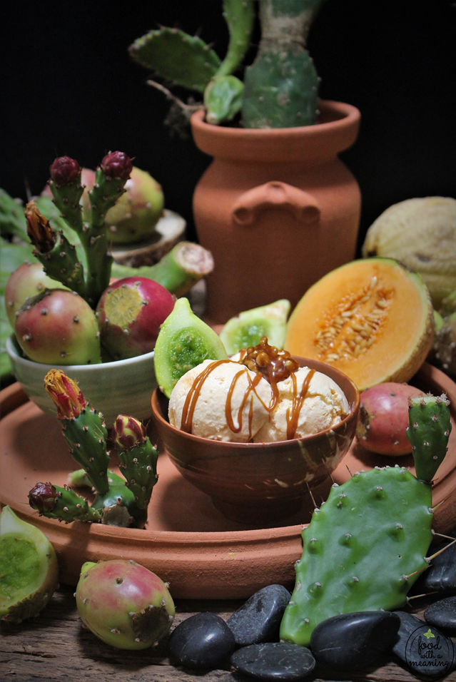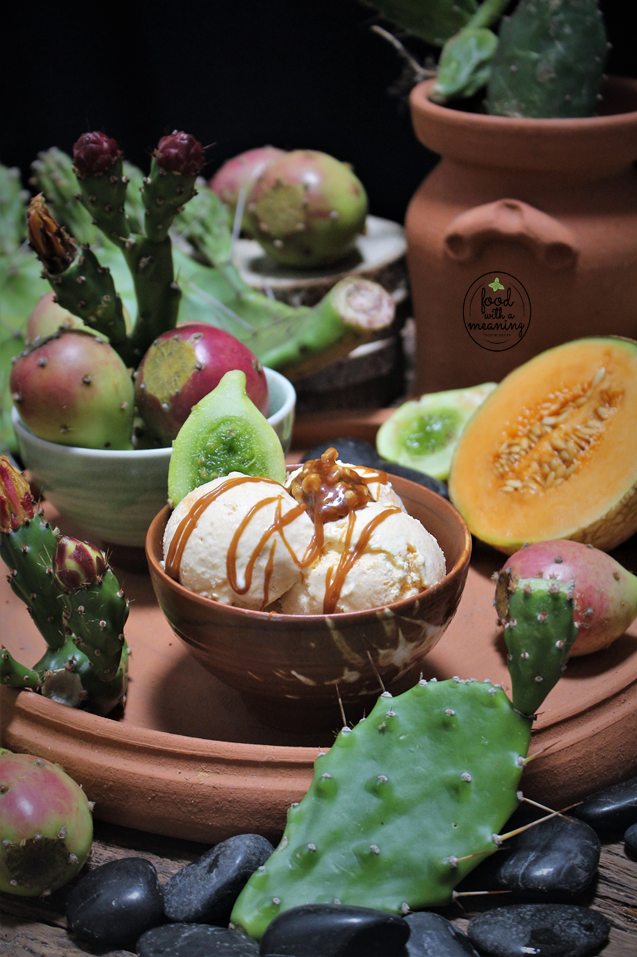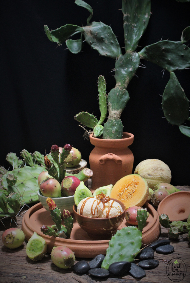 Aqui nas ilhas açorianas estamos na época do Figo-da-índia, um fruto cujo potencial não tem sido até à data devidamente explorado. Por este motivo, resolvi dar-lhe destaque e desenvolver uma receita de Gelado de Figo-da-Índia e Meloa, ambos produtos típicos da Ilha de Santa Maria, integrando-a no terceiro showcooking “Experimenta, é bio”, desta vez realizado na ilha atrás referida. Este evento, uma iniciativa da Secretaria Regional da Agricultura e Desenvolvimento Rural, pretende promover os produtos biológicos locais e seus produtores, bem como alertar para as vantagens para a saúde e para o ambiente da produção e consumo destes produtos.