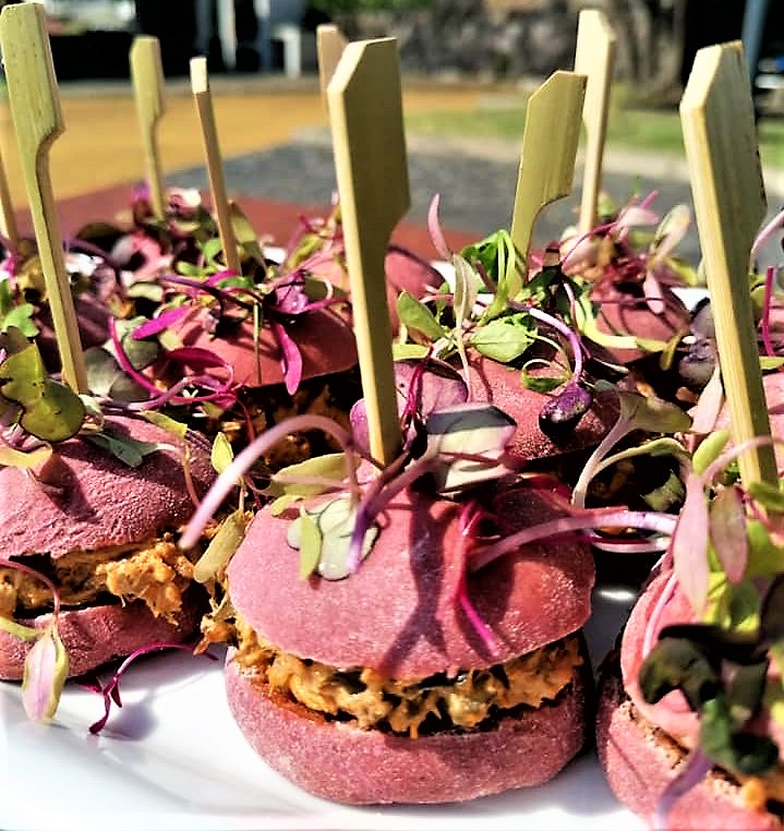 🌱Paté de ovas, filetes de cavala e erva-lagosta em brioche de beterraba