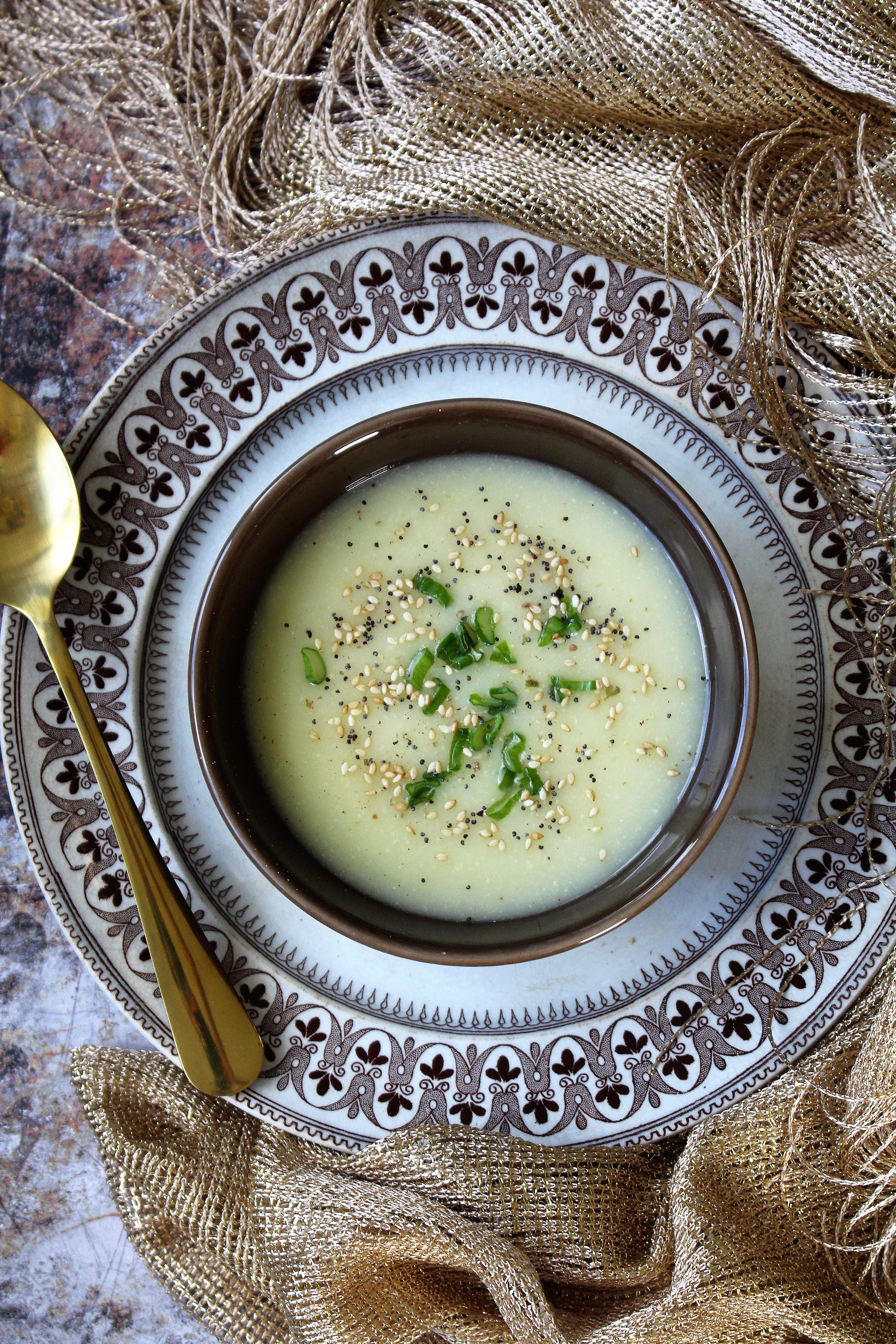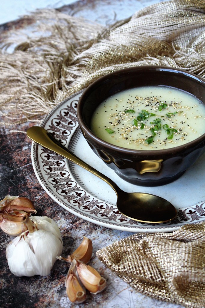 Creme de alho assado com curgete e caldo caseiro de frango![]()