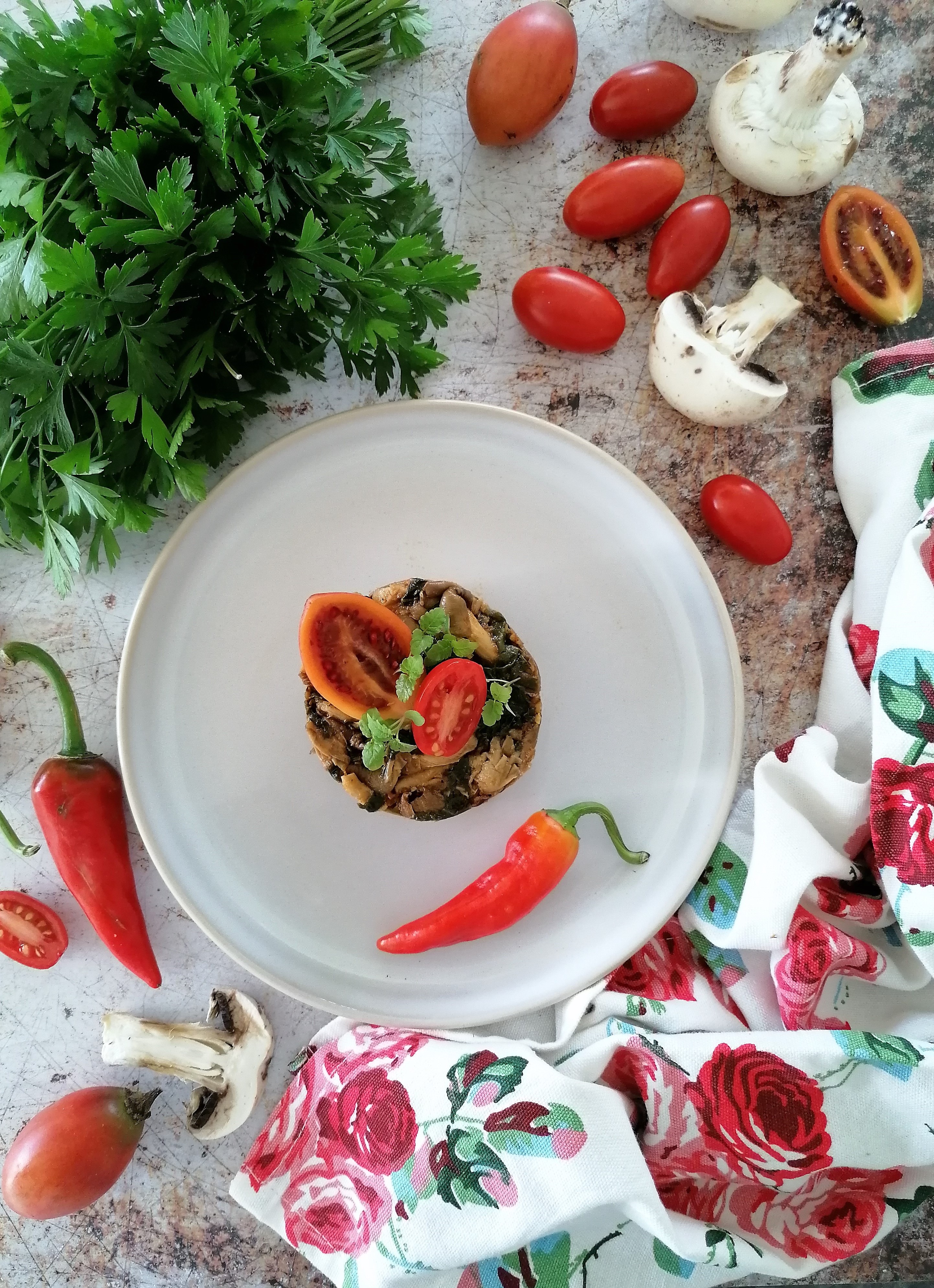 Com cogumelos, couve murciana, grelos, tomate seco (e malagueta bastante![]()