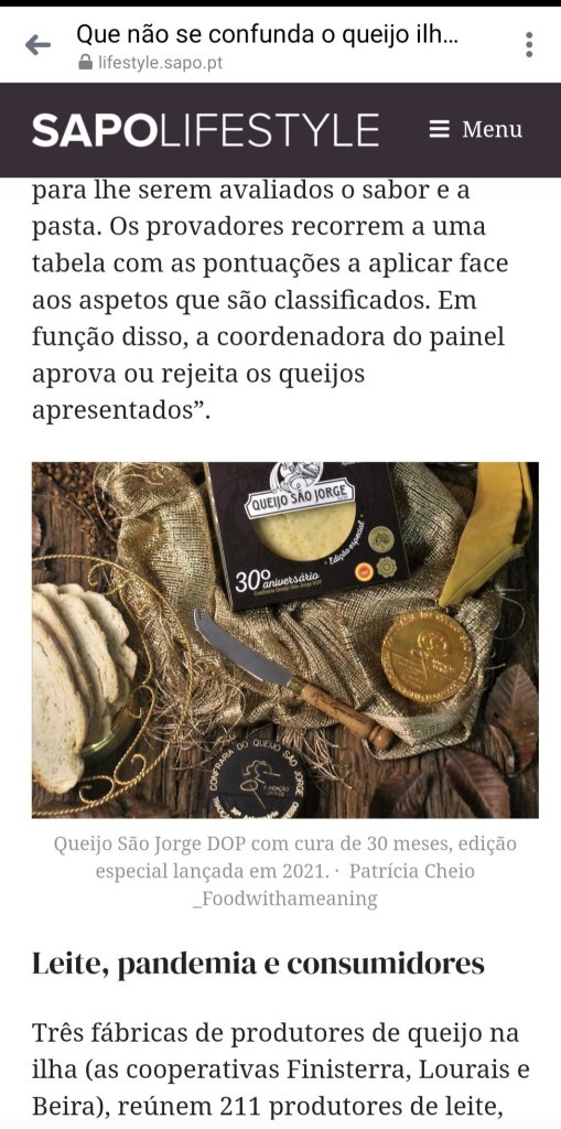 Hoje em destaque na SAPO a foto que fiz para a comemoração dos 3O°Aniversário do Queijo São Jorge Dop.