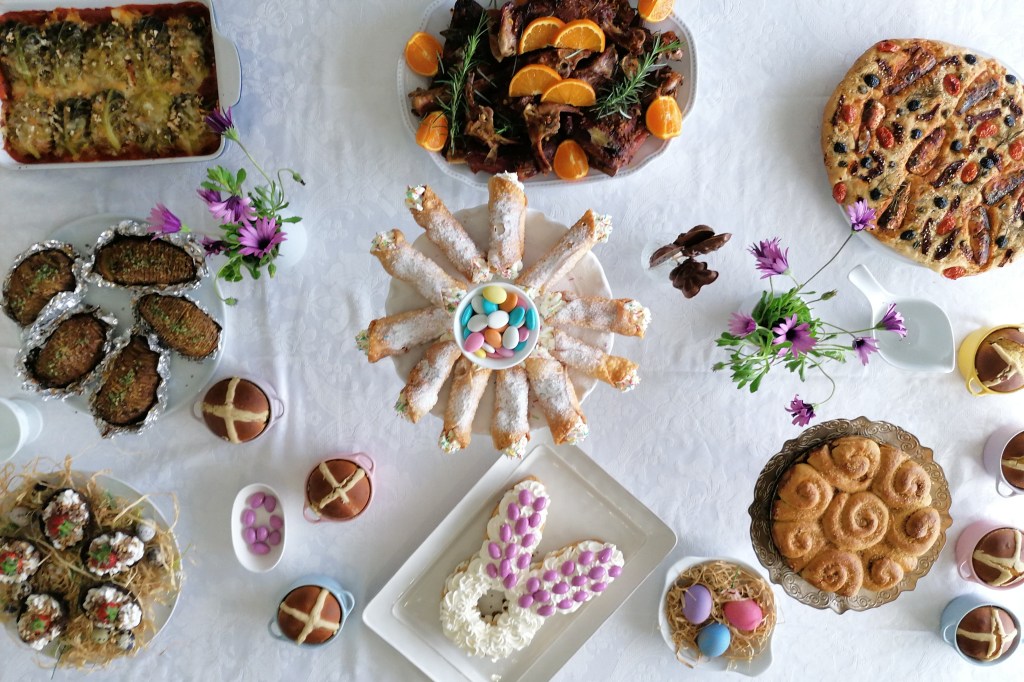 Do cardápio constou, para além de boa disposição, Foccacia Ovo de Páscoa, Batatas Hasselback, Arroz Árabe em Trouxas de Couve Lombarda, Cabrito Assado à Grega, Hot Cross Buns (o folar inglês), Folar de Canela e Erva Doce, Cannoli Sicilianos, Ovos de Chocolate recheados, Bolo Coelho de Biscoito com recheio de mascarpone e amêndoas de chocolate.