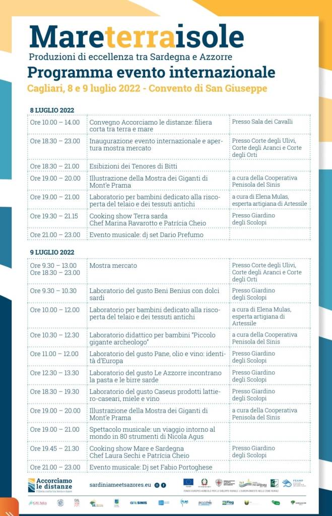Nos dias 8 e 9 de julho, realizou-se na cidade de Cagliari – Sardenha / Itália, o primeiro evento do projeto de cooperação internacional “Reducing the Distance: short supply chain between land and sea” que engloba os GAL açorianos ADELIAÇOR, ARDE e GRATER e 10 GAL de Itália. O evento teve como objetivo destacar os produtos agroalimentares locais, derivados da terra e do mar.