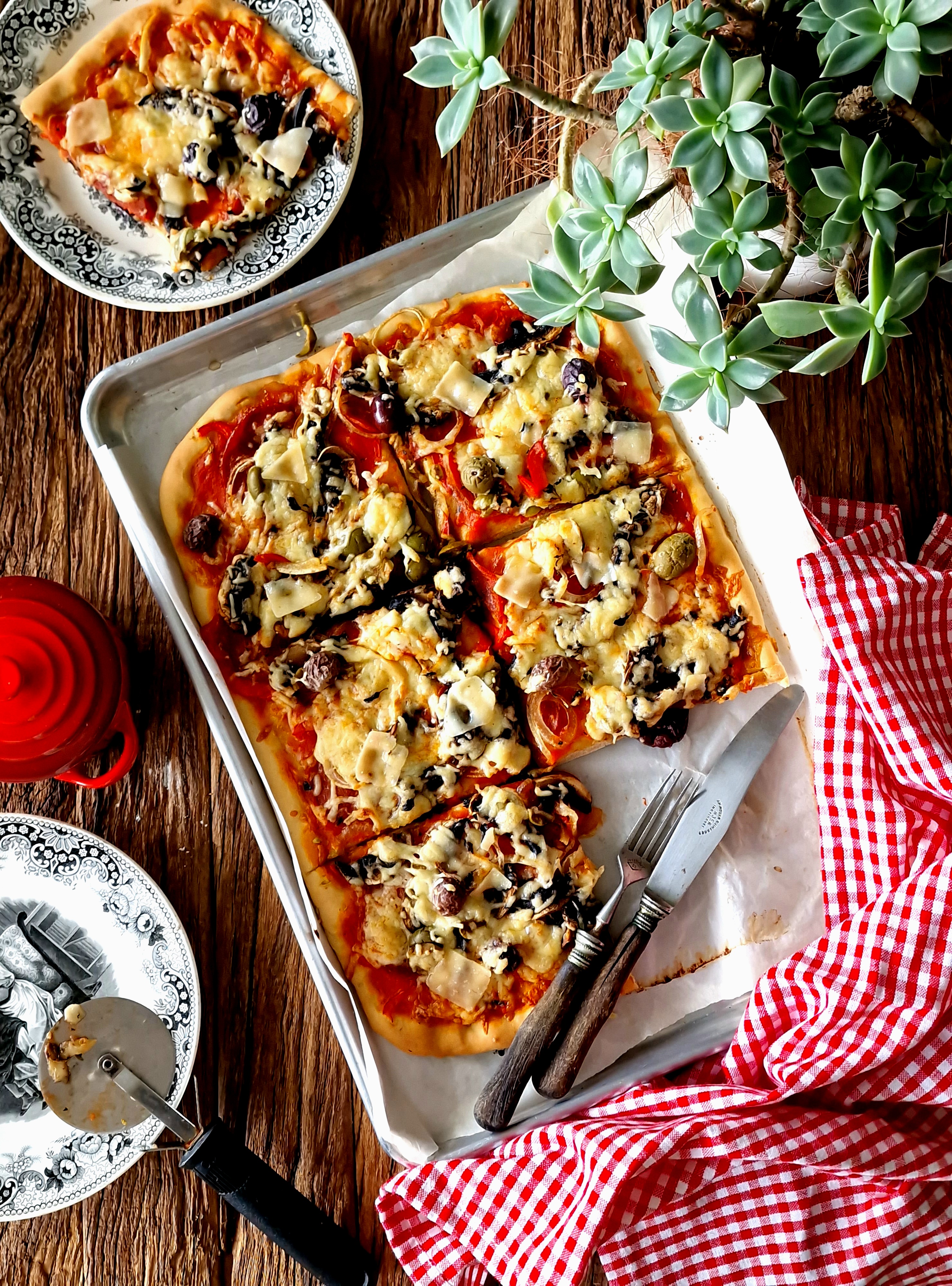 Hoje, a Bimby fez a massa de piza e o molho de tomate. O Queijo São Jorge DOP deu um toque especial e o forno finalizou em grande!