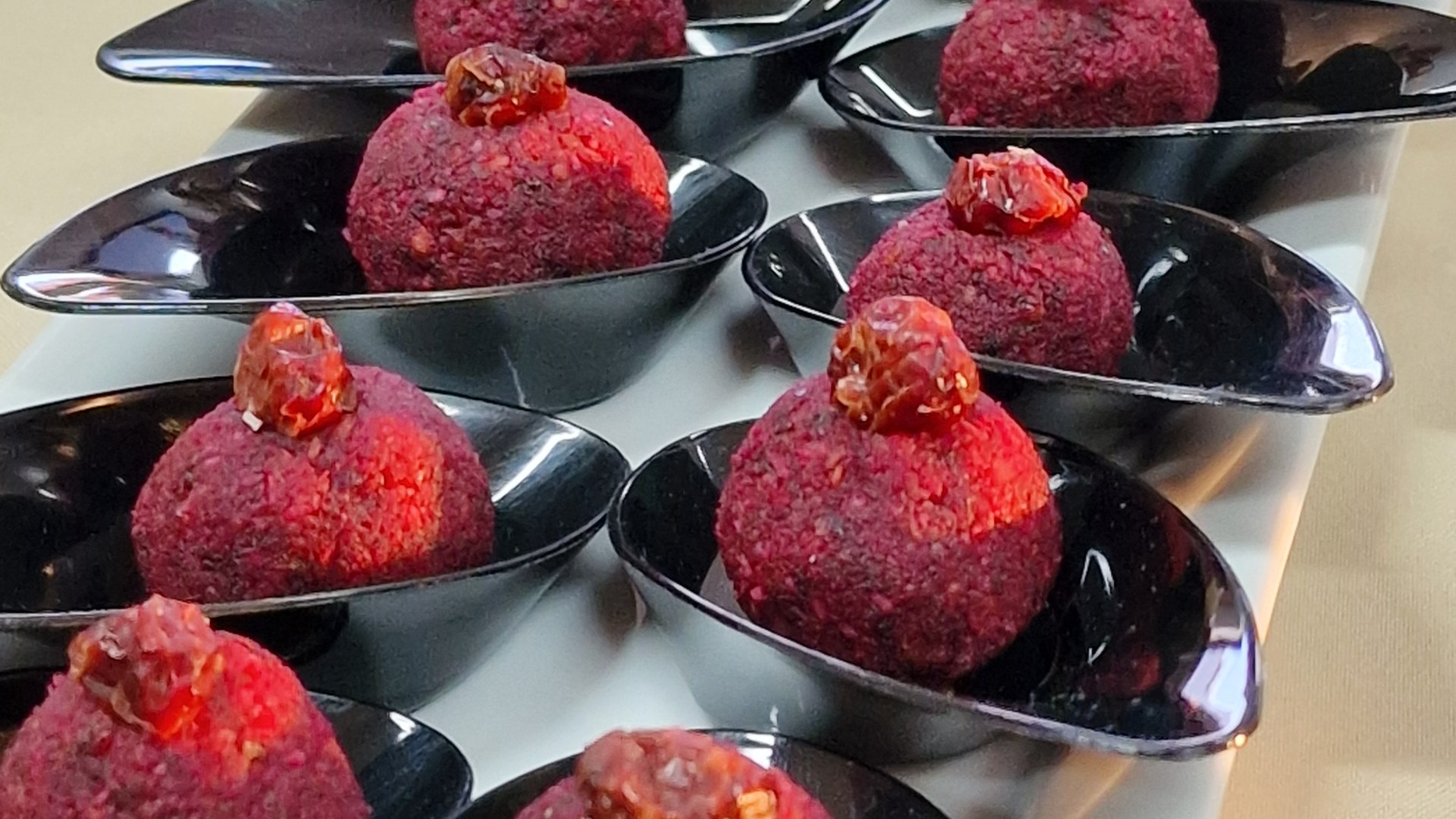 Trufas de Beterraba, Amendoim, sultanas e vinho do Porto