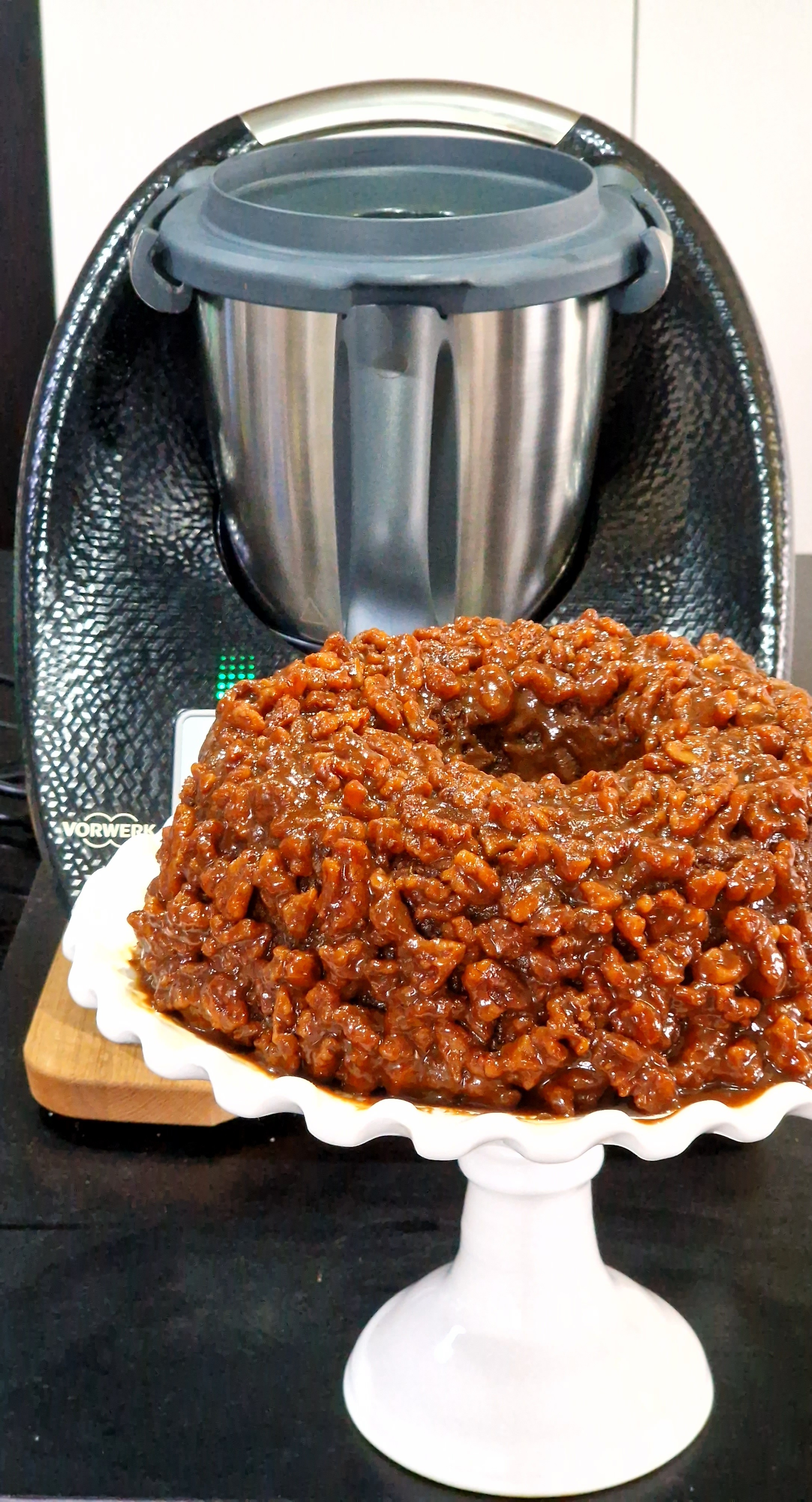 Preparação do bolo em robô de cozinha Bimby (líquidos pesados em gramas)